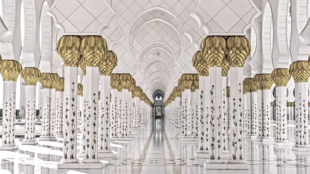 Standing in radiant white against the desert sky of Abu Dhabi, the capital of the United Arab Emirates, the Sheikh Zayed Grand Mosque (جامع الشيخ زايد الكبير) is one of the largest and most breathtaking mosques in the world. Built from 100,000 tonnes of white marble, adorned with gold, semi-precious stones, and millions of Swarovski crystals, this modern masterpiece was the vision of the nation’s founding father, Sheikh Zayed bin Sultan Al Nahyan, who dreamed of a mosque that would unite the world and embody the moderation and beauty of Islam.