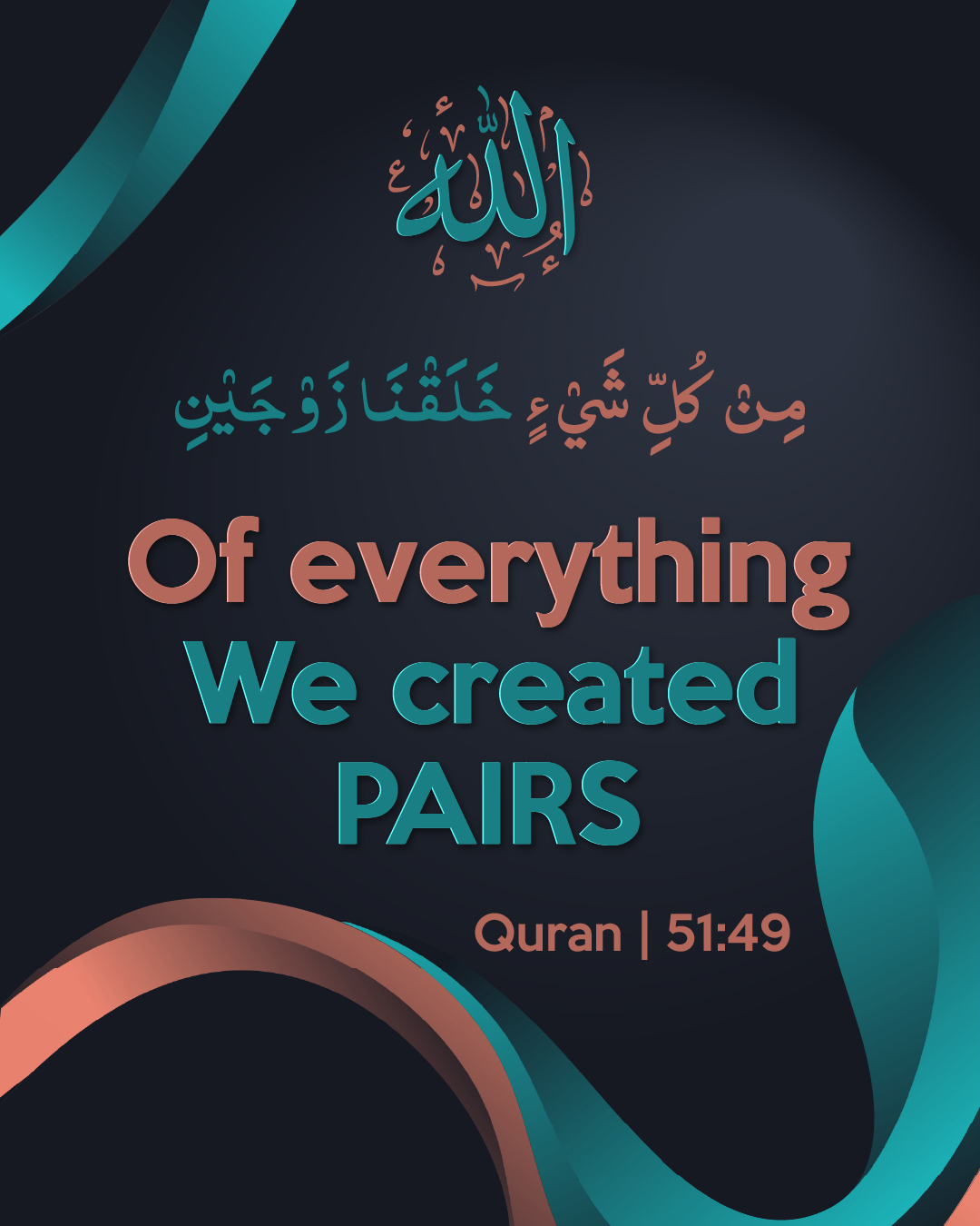 This verse highlights the divine balance within creation, showing that Allah created everything in pairs as a sign of harmony and wisdom. It reflects His name Al-Khaliq (The Creator), whose design is precise and purposeful.