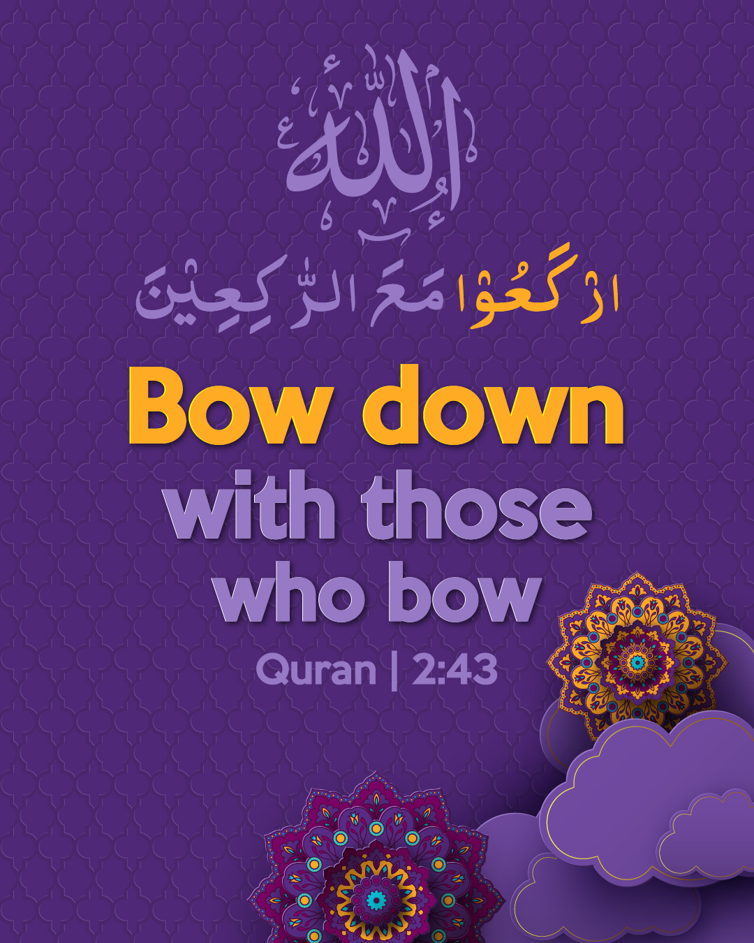 “And observe Prayer and pay the Zakat, and bow down with those who bow.”