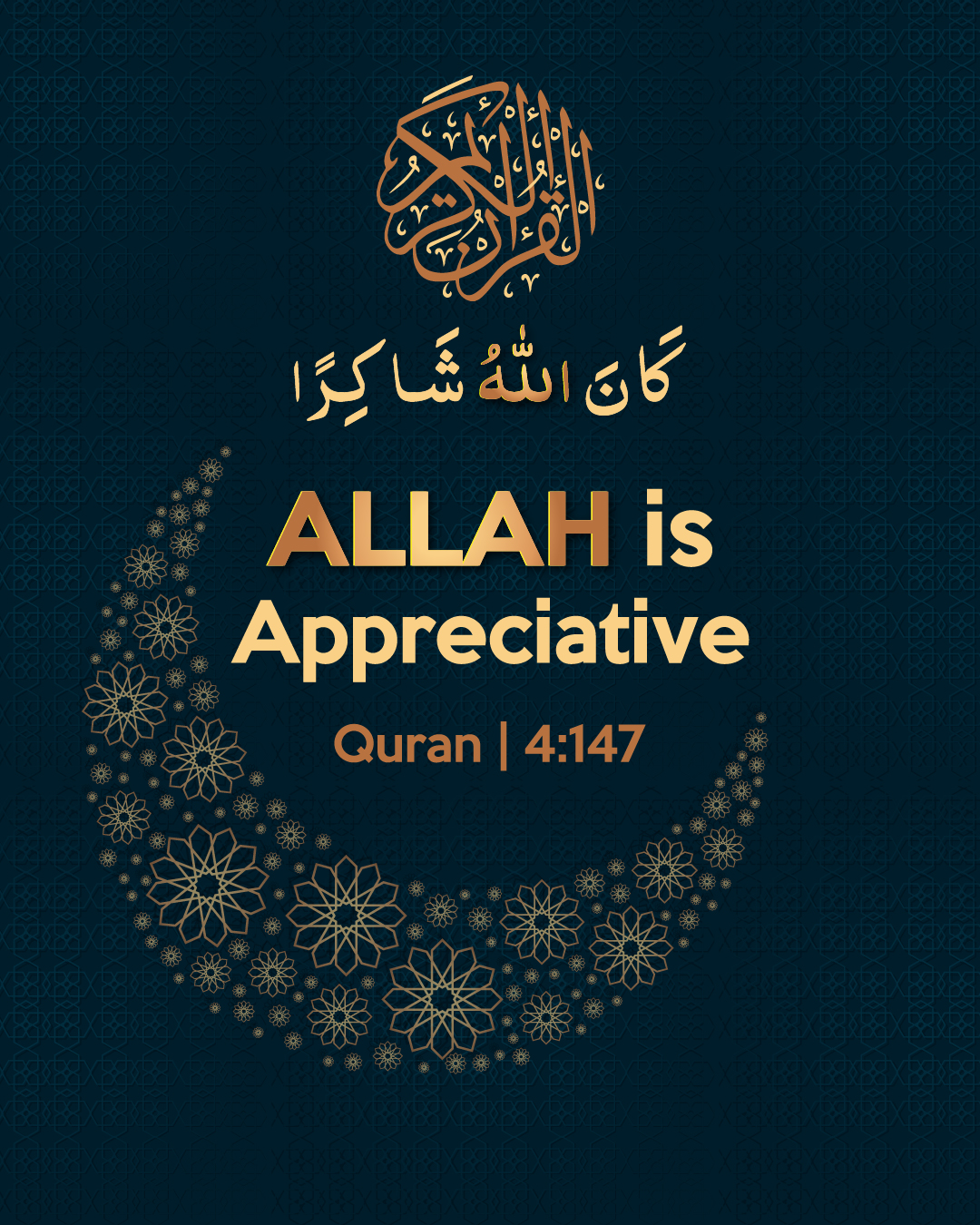 “Why should Allah punish you if you are grateful and you believe. Allah is Appreciative and All-Knowing.”